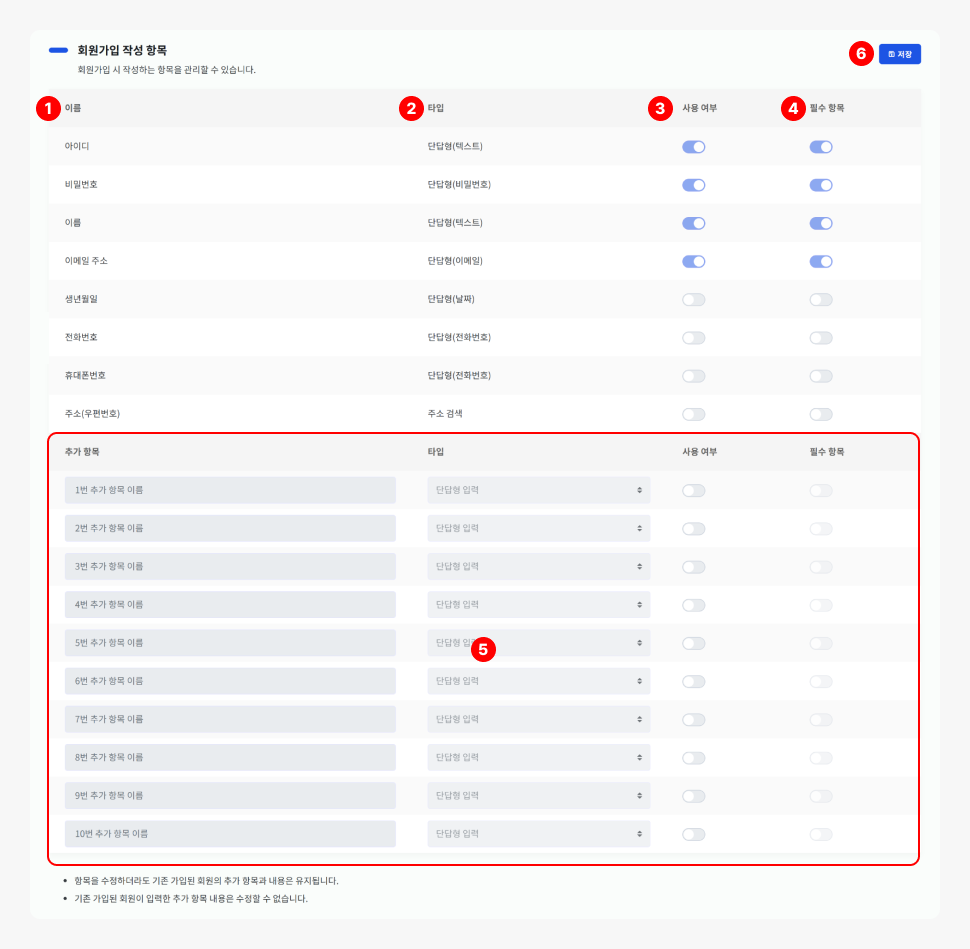 회원가입 작성 항목 설정하기 [보통]