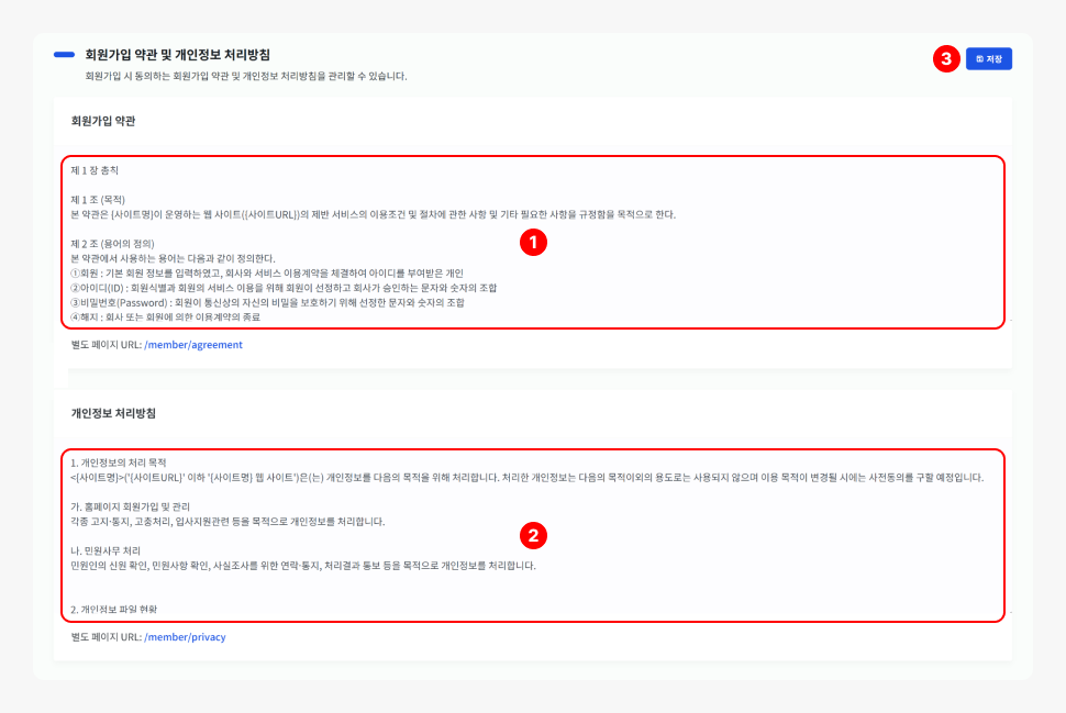 회원 가입 약관 및 개인정보 처리방침 관리하기 [보통]