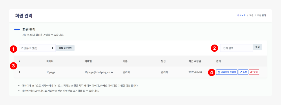 으로 회원을 검색할 수 있습니다.