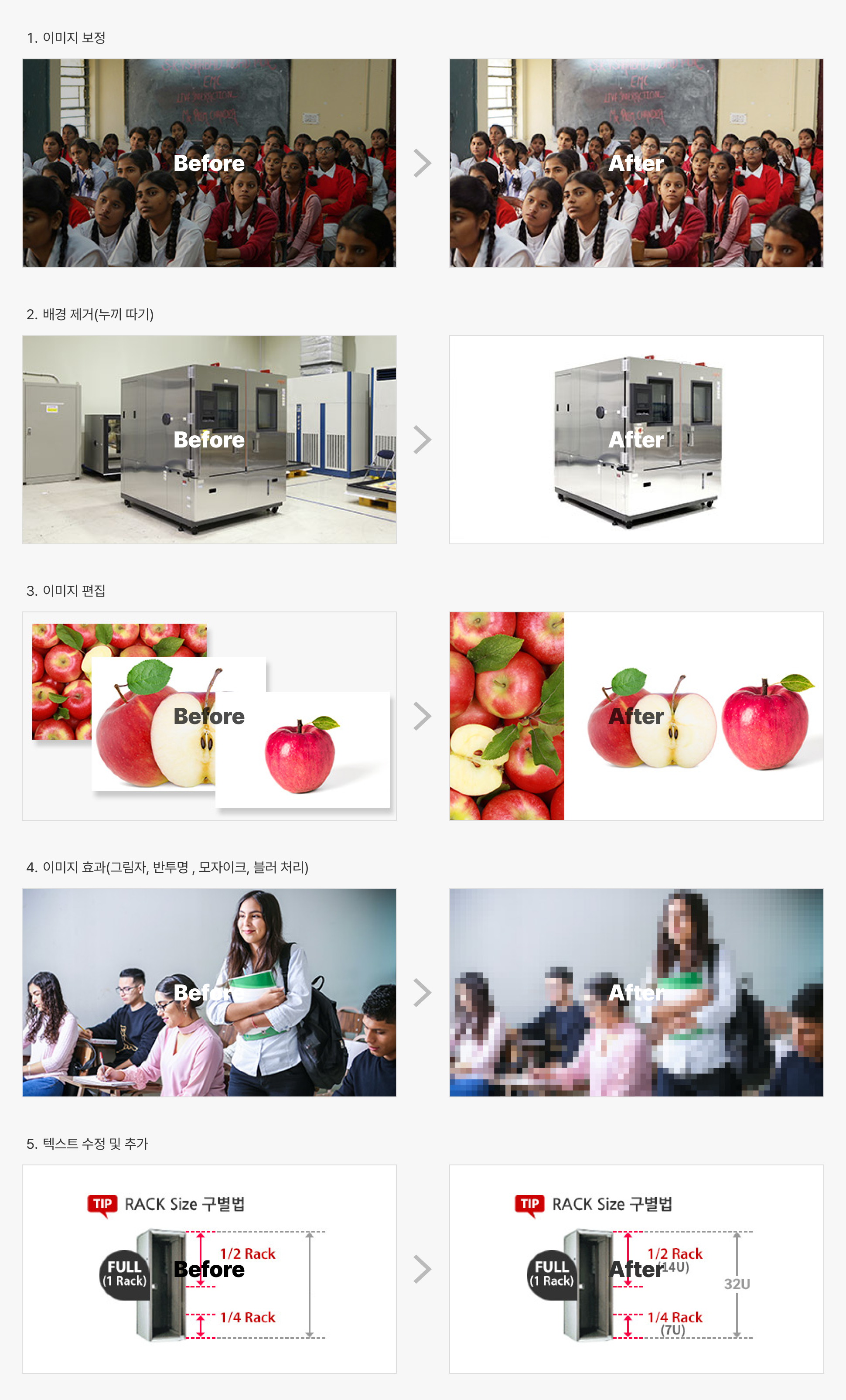 이미지 편집이 필요한 경우 이미지 리터칭 작업 범위에 포함되어,